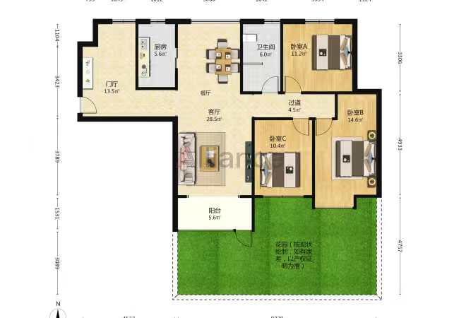 电视1楼带40平院!可进三轮!精装修!拎包入住!