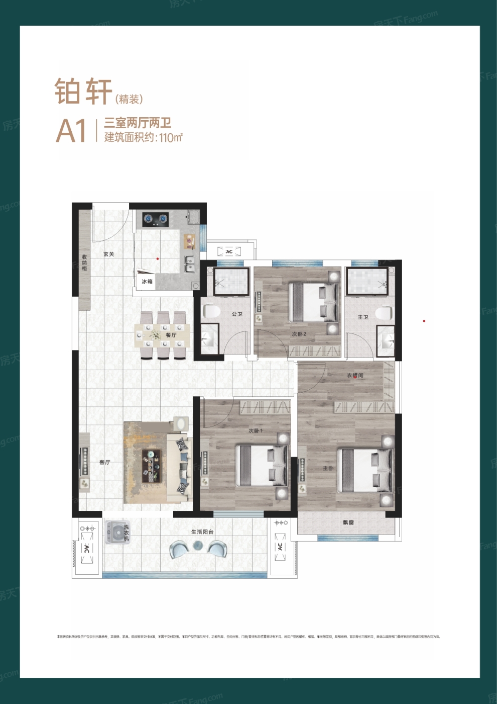 A1(精装)三室两厅两卫 3室2厅0厨2卫 111.00㎡