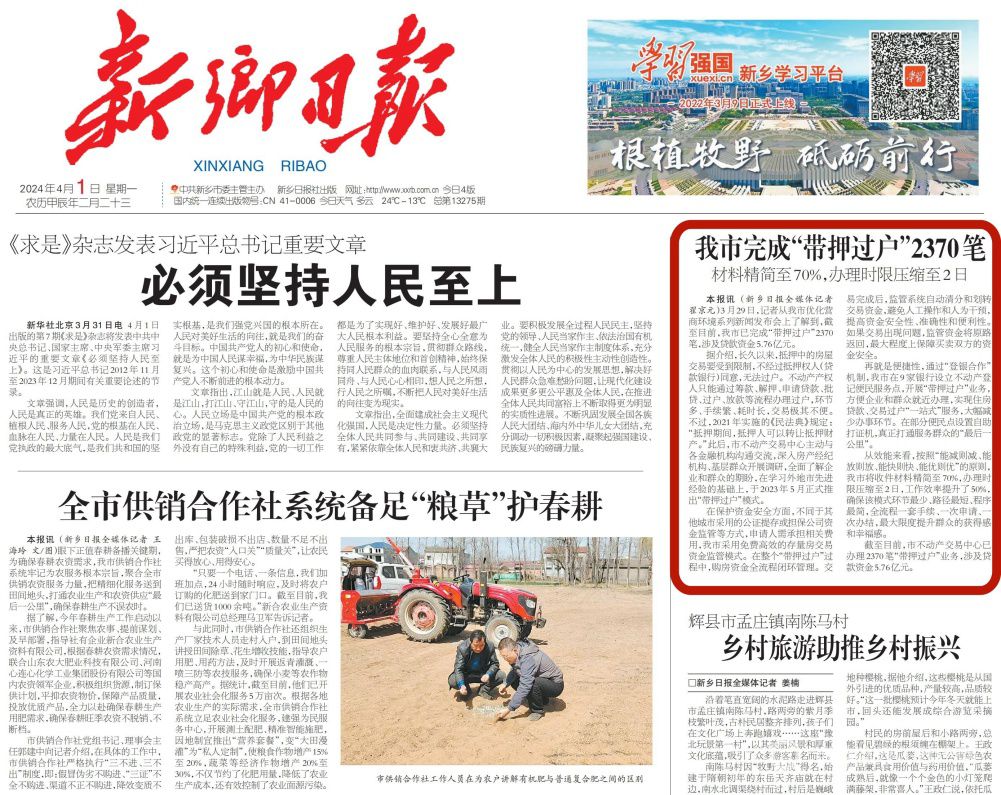 本报讯 (新乡日报全媒体记者翟京元)3月29日,记者从我市优化营商环境系列新闻发布会上了解到,截至目前,我市已完成“带押过户”2370笔,涉及贷款资金5.76亿元。